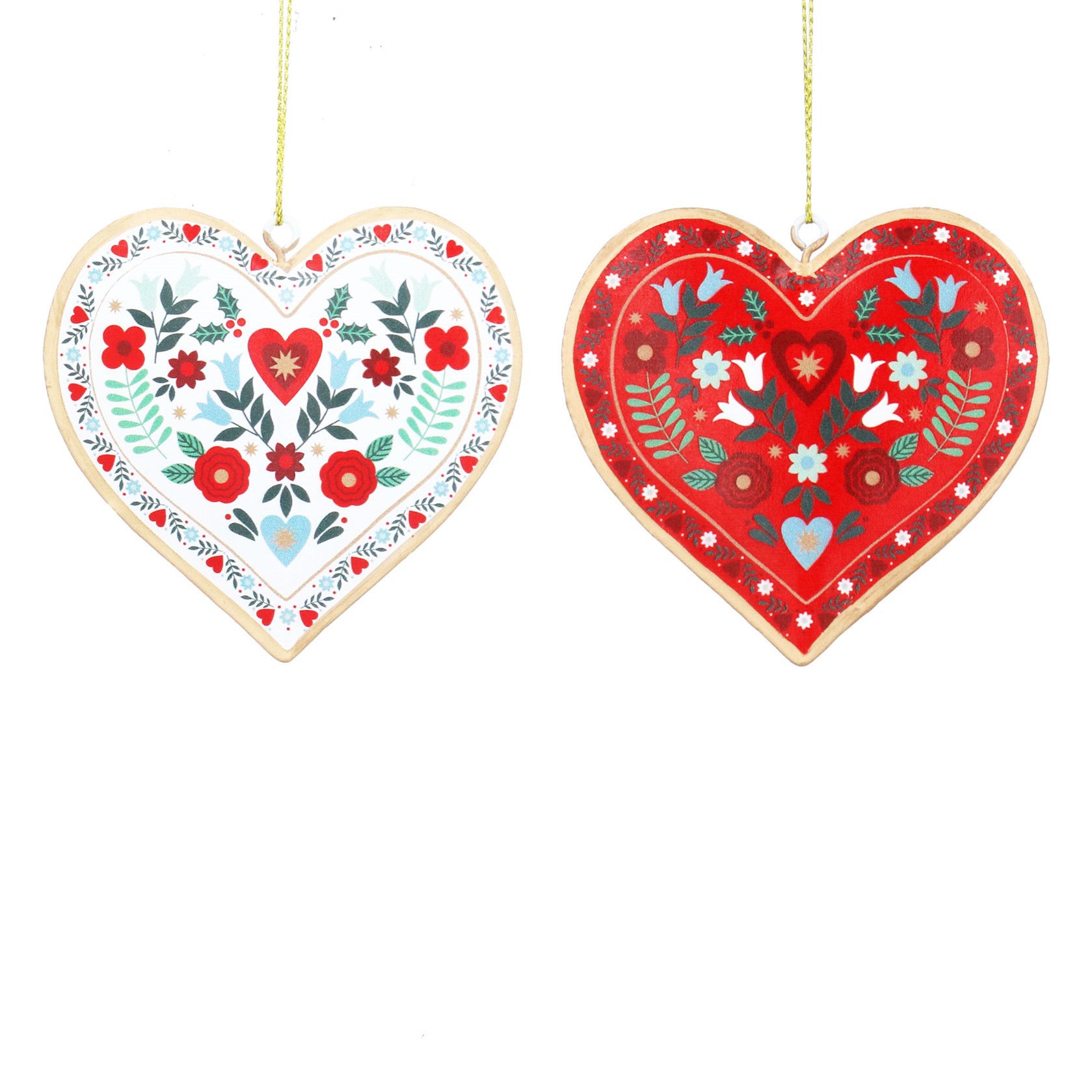 Alpine heart tin hanging decoration for a scandi style traditional tree decor.