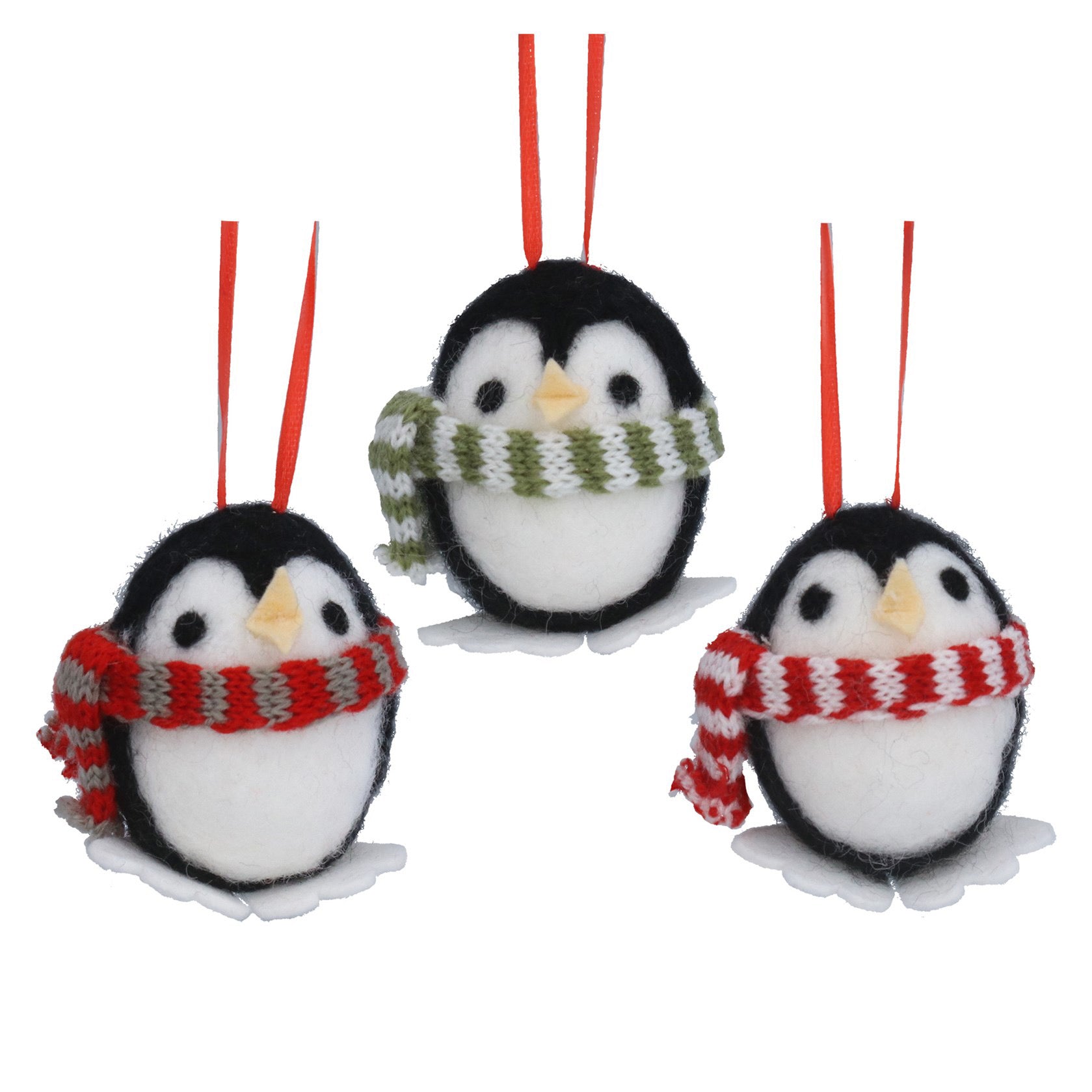 Penguin wearing a scarf hanging tree decoration.