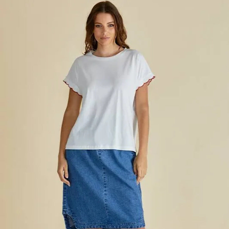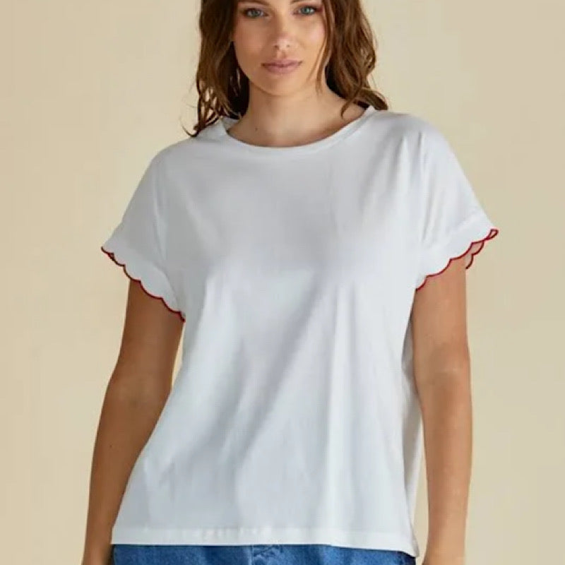 Betty Basics White Sloane Scallop Tee