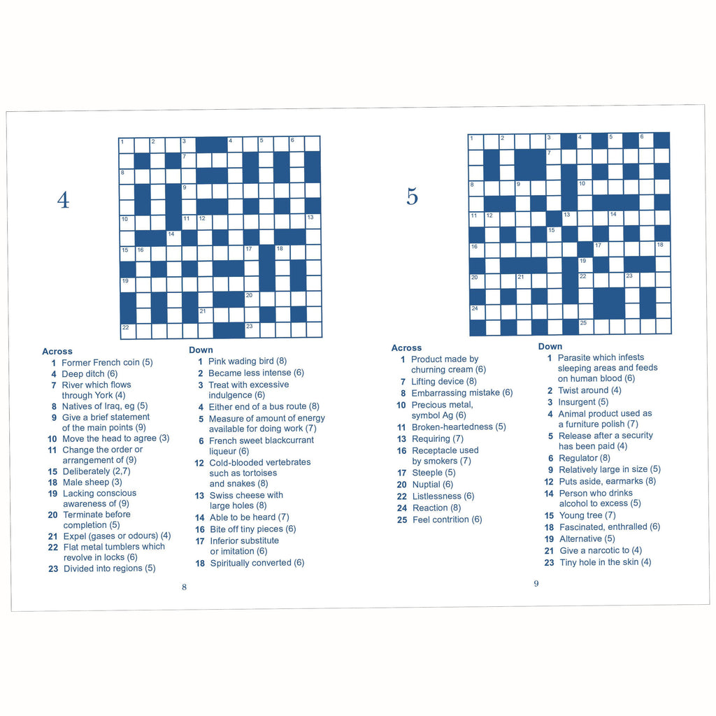 Crossword fans will love the highly entertaining puzzles in this collection, all designed to provide a stimulating challenge for the word and general knowledge enthusiast. An elastic tie holds the pages closed, perfect for puzzling on the go.