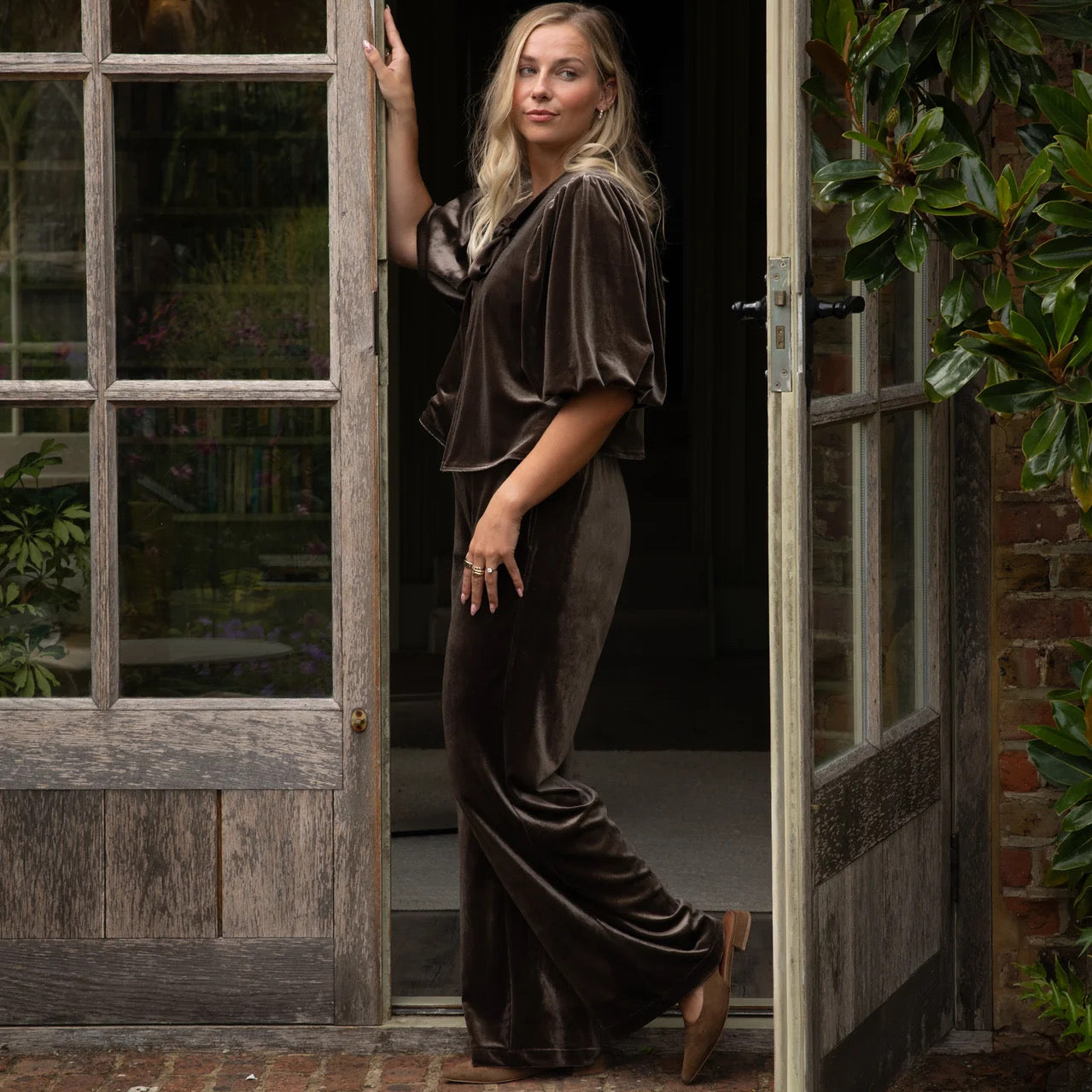 Evie trouser are an elegant straight leg trouser with a flat front, elasticated back with waist adjustors inside for a flattering fit. Featuring concealed side pockets and a beautiful velour finish. Effortlessly take from day to night.