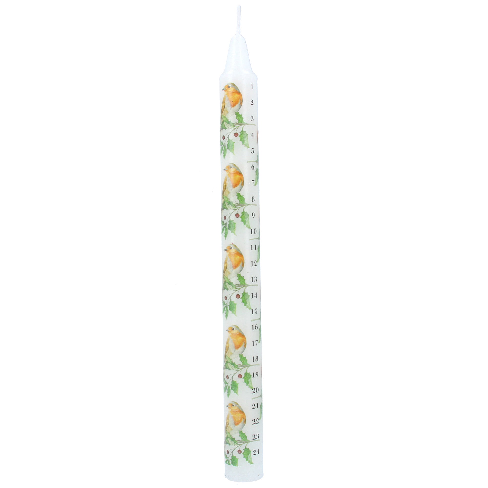 Enjoy the magic of Advent and the count down to the festive season with this robin and holly dinner advent candle from Gisela Graham.