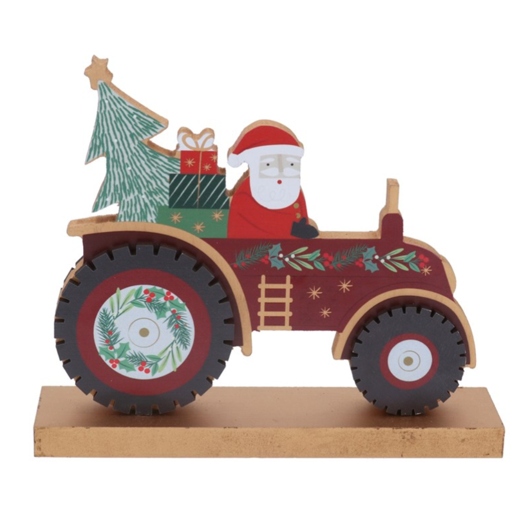 Countryside Santa on a Tractor wooden decoration. Ideal for your sideboard or shelf.