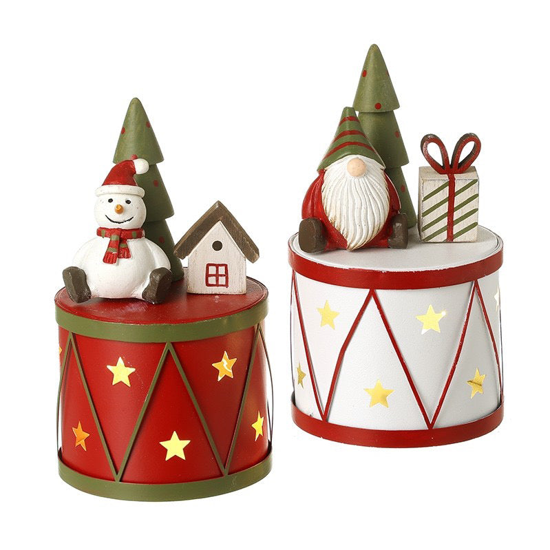 Light Up Drum with Santa & Snowman