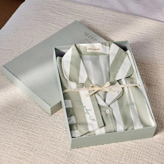 Katie Loxton Gift Boxed Pyjama Set - Green Mist & Off White
