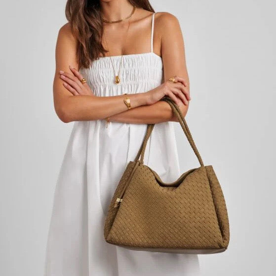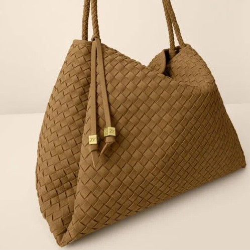Our Nova Hand Woven Large Shoulder Bag in Caramel showcases soft-to-touch woven suedette, adding texture and dimension to any look. Considered details include an easy magnetic closure, an internal zip pocket for valuables, and a signature branded bag charm. Designed to suit both work and play, it’s the must-have profile of the season.