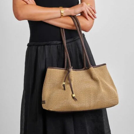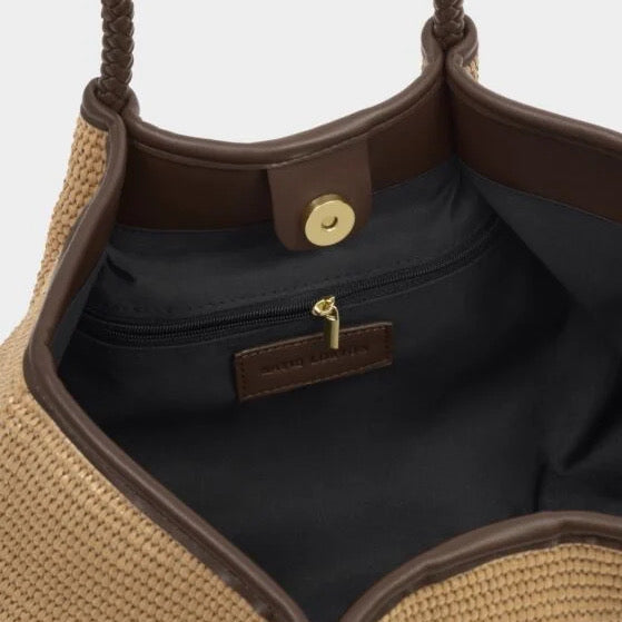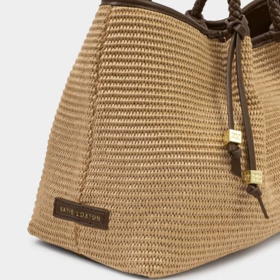 Katie Loxton Nova Raffia Small Shoulder Tote - Natural Raffia /Bitter Chocolate