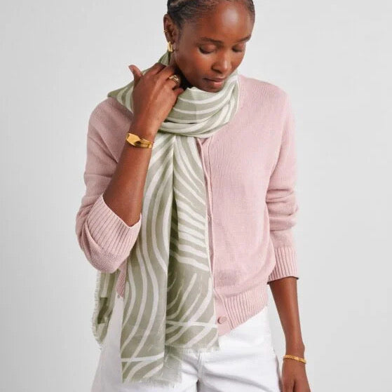 Katie Loxton Waved Lines Printed Scarf - Sage / Off White
