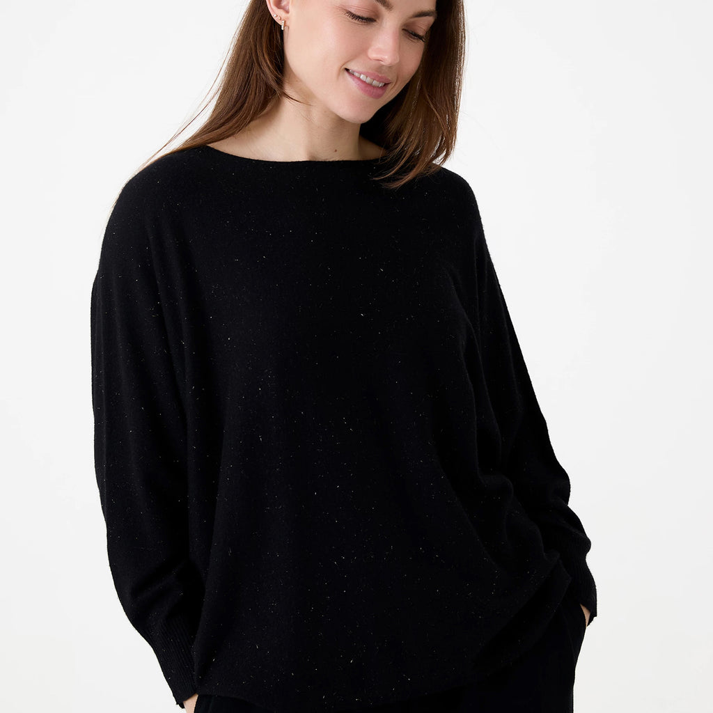 Add some glitz to your wardrobe with our short sleeve crew neck jumper. A great basic with a touch of sparkle; this style looks great paired with our pleat front trousers and heels for a dressy evening look.
