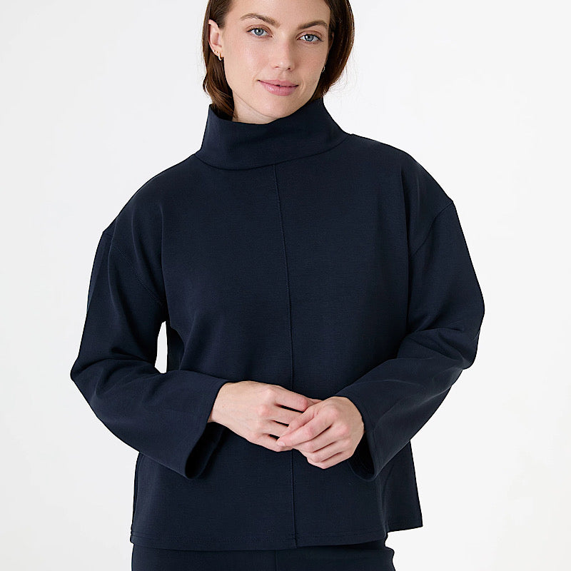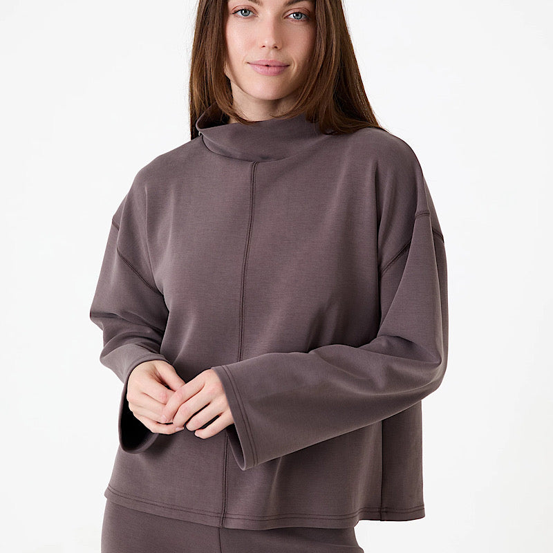Stay cozy in style with this Luxe Jersey Funnel Neck Sweatshirt, made from ultra-soft jersey fabric that feels as good as it looks. The relaxed fit and elevated funnel neck bring a modern touch to a classic silhouette, perfect for lounging at home or layering on the go.