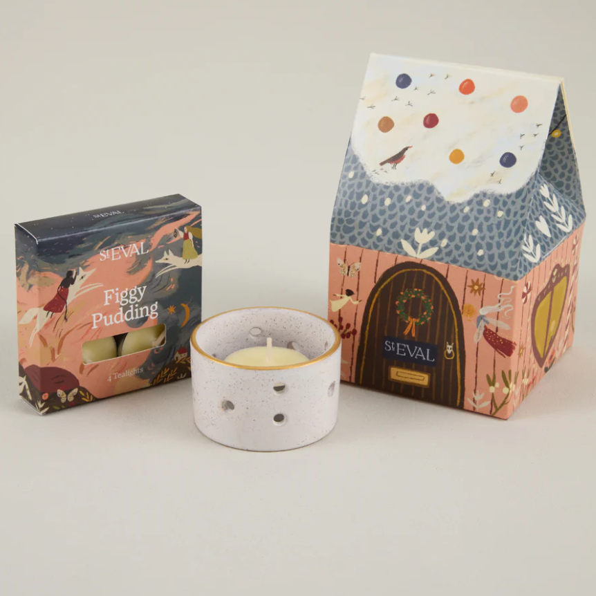 St Eval Christmas Cottage Figgy Pudding Tealight Holder & Tealights