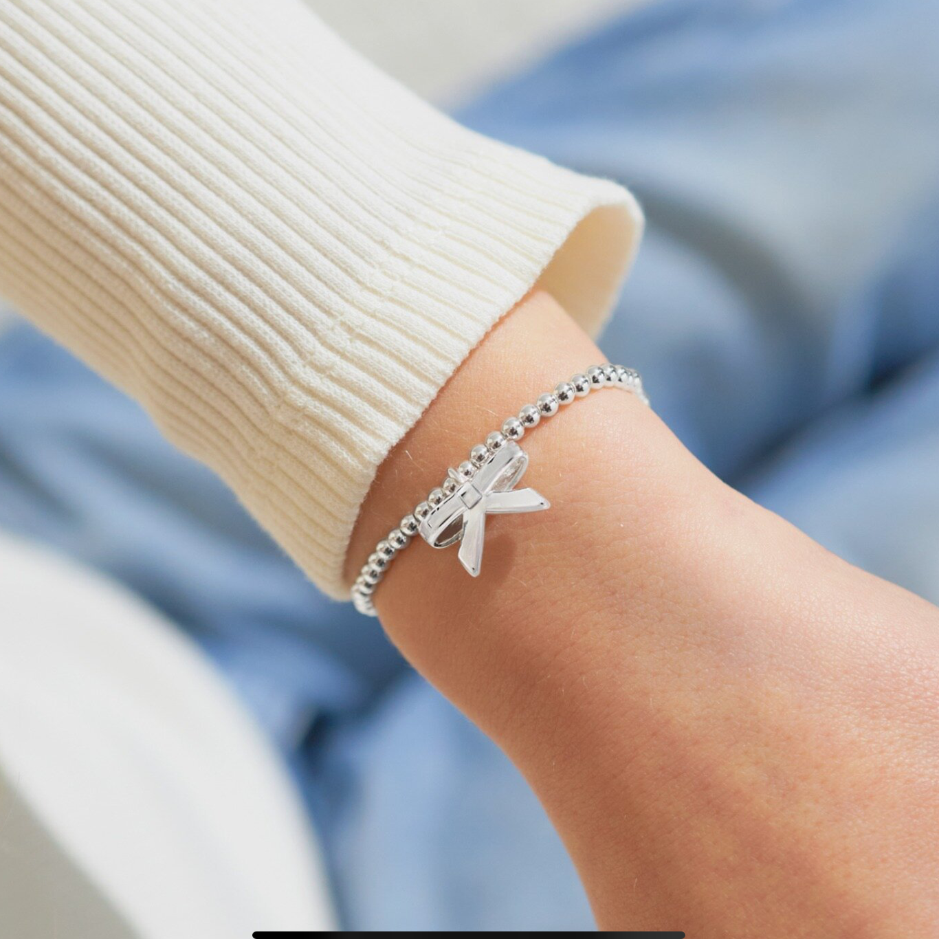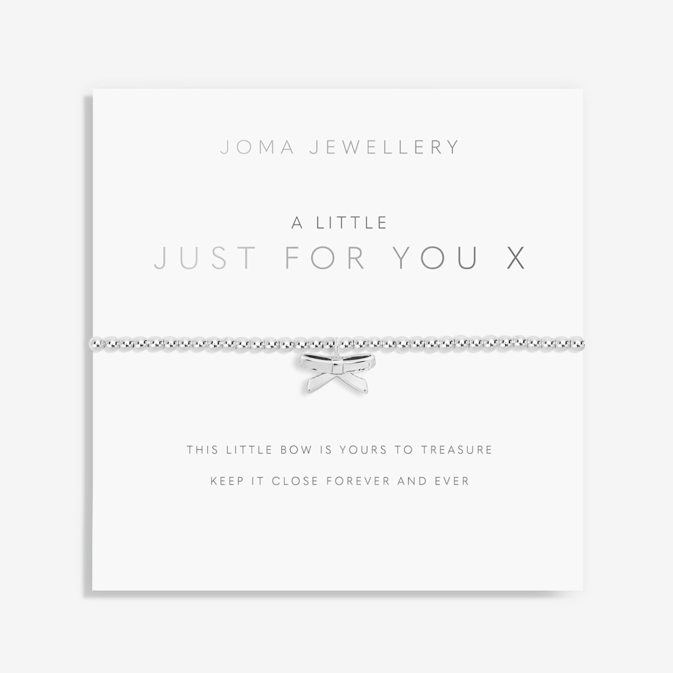 Say hello to our adorable collection of Children’s A Little Bracelets. Designed in silver plating, rose gold plating and gold plating, these sentimental bracelets are as cute as they are stackable, so you can help the little ones in your life to build their very own shining wrist stack in the sweetest way.Our Children's A Little 'Just For You X' Bracelet features a silver-plated stretch design for smaller wrists, a silver-plated bow charm, and a sentiment-stamped card.