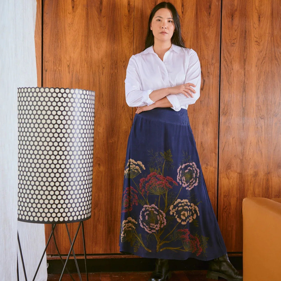One Hundred Stars Parsley Seed Navy A-Line Skirt