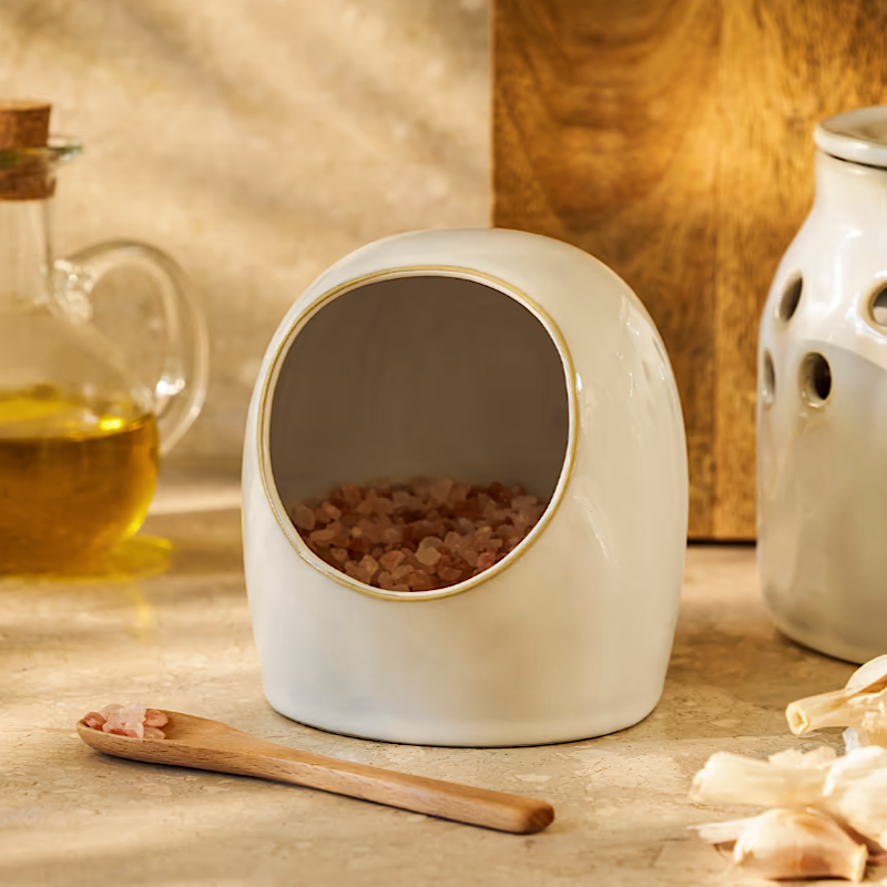 Store salt the traditional way with our Ithaca Salt Cellar. This delightful salt cellar comes with a bamboo spoon for sprinkling salt into cooking as it bubbles away on the stove. Each one is unique thanks to natural variations in the reactive glaze, and it's perfect for sitting on the kitchen countertop alongside other pieces from this striking collection.
