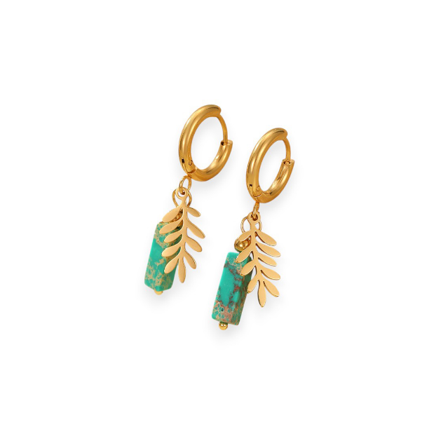 Last True Angel Natural Stone Leaf Pendant Huggie Green & Gold