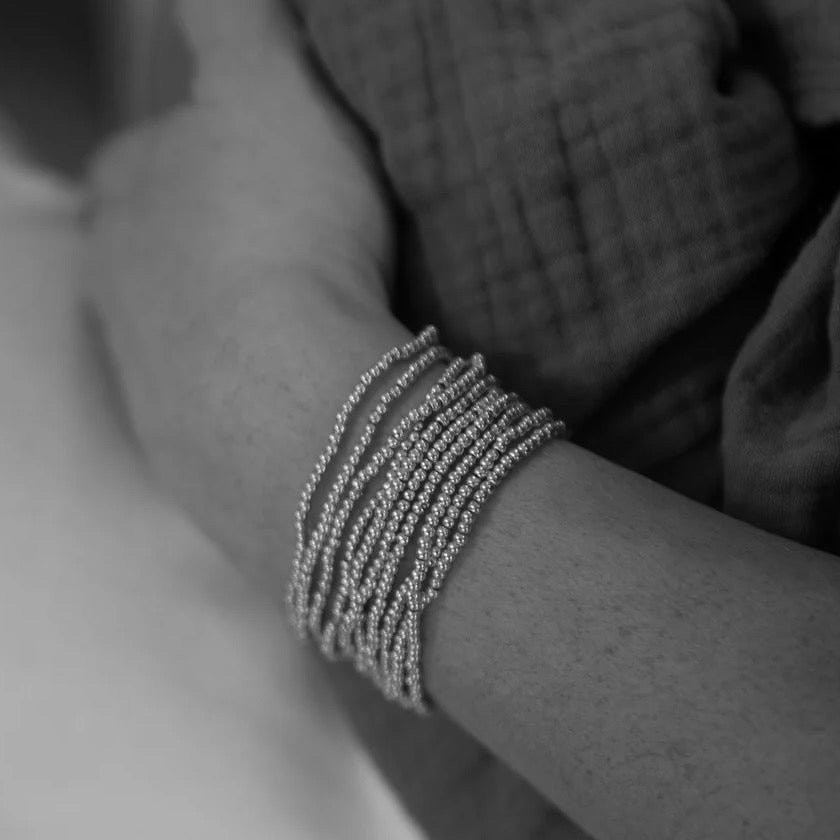 This multi ball elasticated bracelet is the perfect all in one stacking piece. Bracelets are detached so the stack can be reduced in thickness.