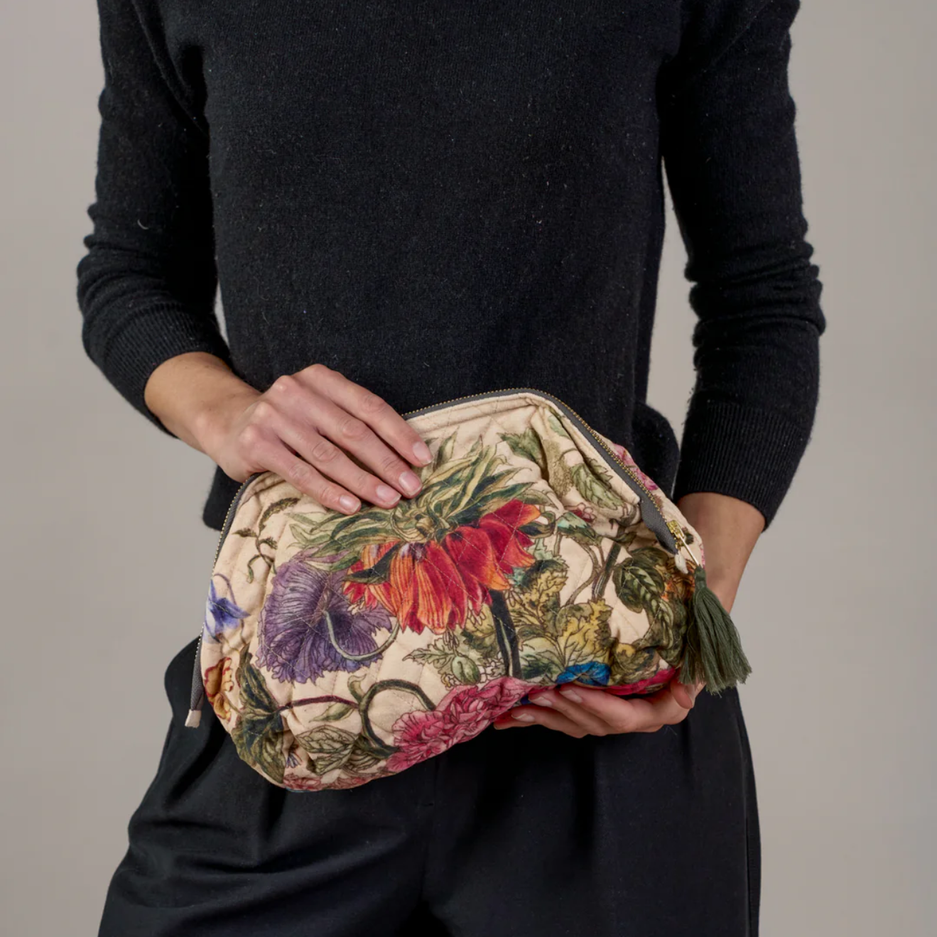 This 100% organic cotton velvet pouch is perfect for throwing in your handbag, taking on a trip away, and even for elevating your look as a clutch bag. With a large main compartment and two pockets in the lining, this velvet pouch has enough room to store all the products you’d need for any event.