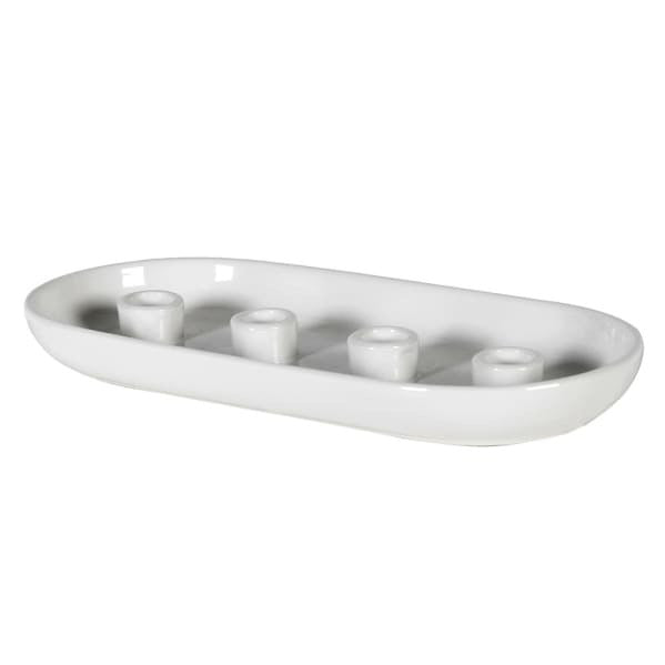 Simple but beautiful candleholder. Off white ceramic tray with 4 candle holders, add some decoration for a seasonal display or leave plain.