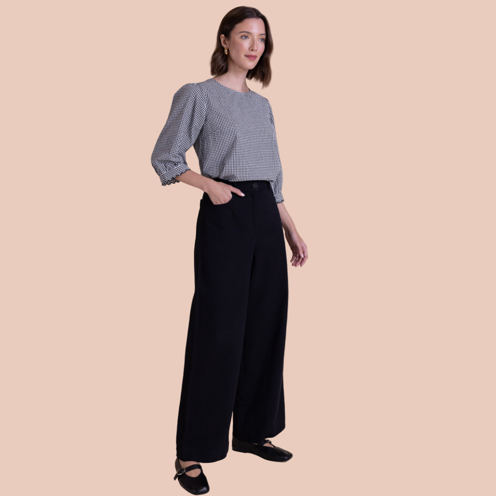 Saige by Nomads Cotton Drill Wide Leg Black Jeans