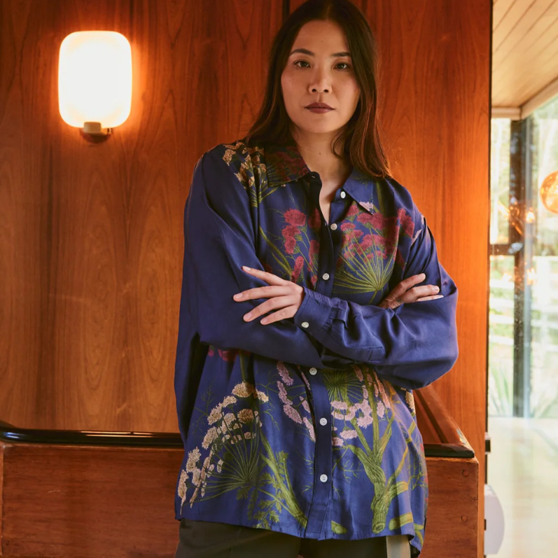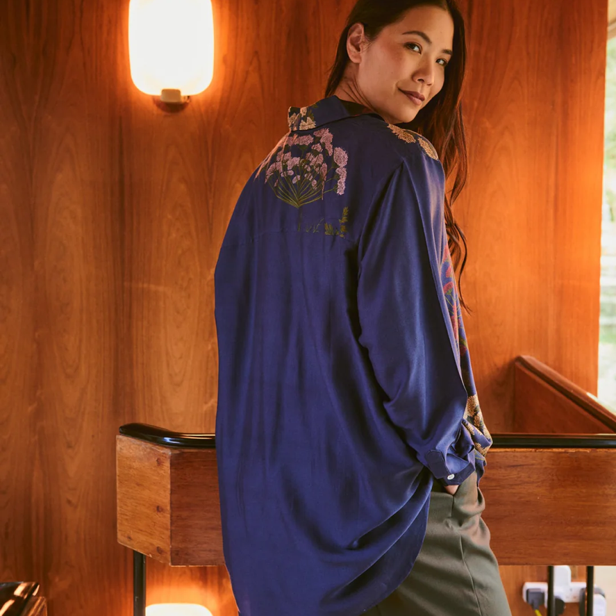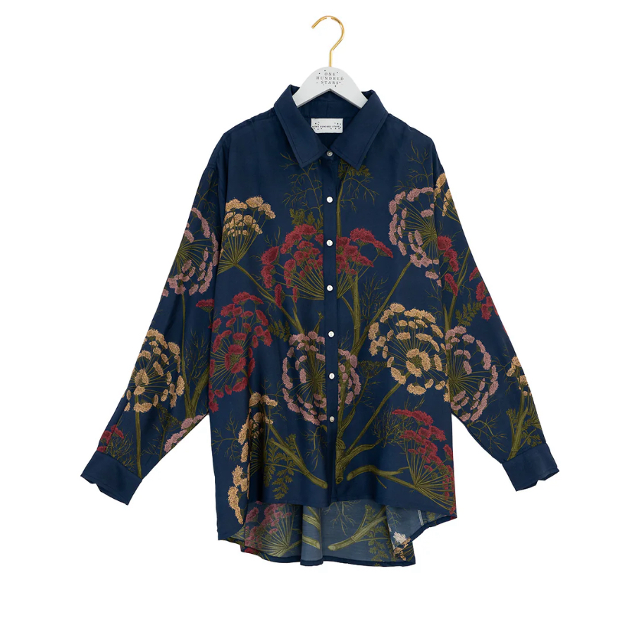 One Hundred Stars Parsley Seed Navy Oversized Shirt