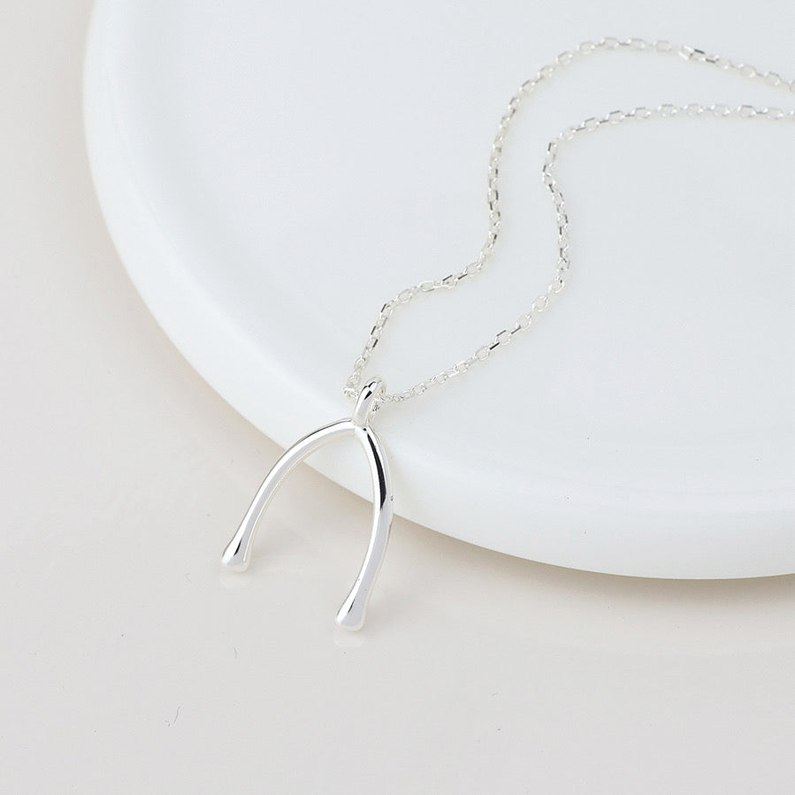 Sterling silver fine chain necklace with a simple wishbone pendant.