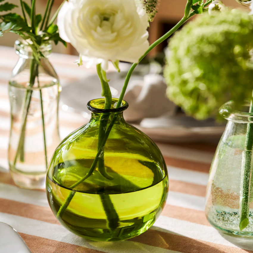 Our charming Clearwell Bud Vase brings instant style to a windowsill, coffee table or sideboard, with or without a flower displayed in it. Made from mouth-blown recycled glass in a beautiful fern green, its striking round shape and narrow neck is perfect for supporting a single stem as it opens into bloom.