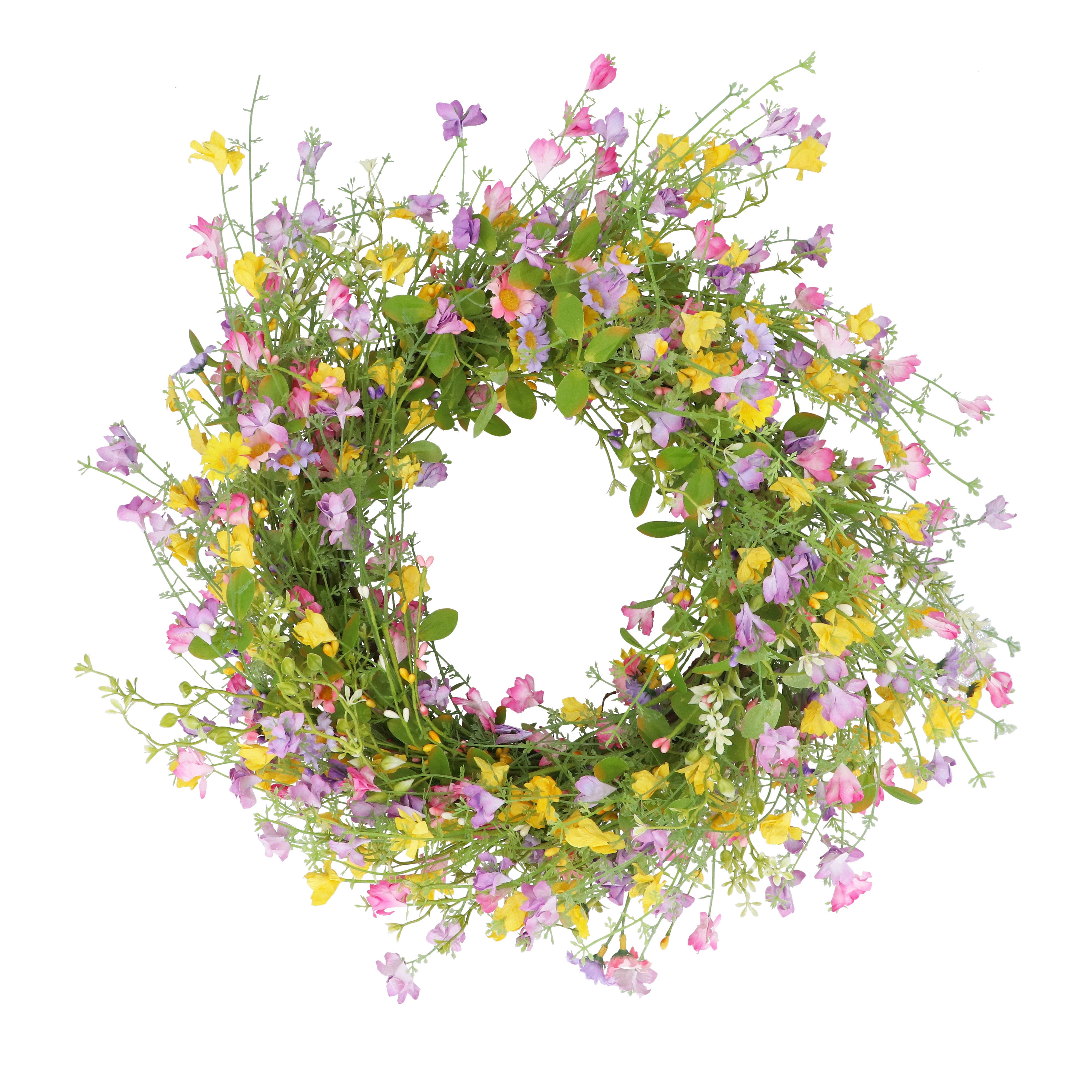 Pretty faux pastel daisy spring wreath perfect for your front door, or even used on a table with a candle.