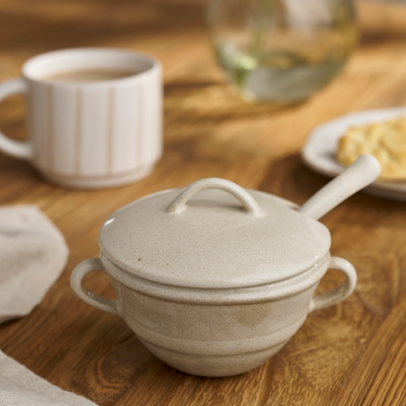 Our Chalgrove Sugar Bowl with Spoon is an essential addition to the kitchen worktop, and would also be perfect for salt, pepper or other spices. Made from stoneware with a goes-with-everything natural glaze, it includes a lid and spoon and would look lovely on a table set for afternoon tea. Pair with our Chalgrove canisters for a tidy and coordinated kitchen.