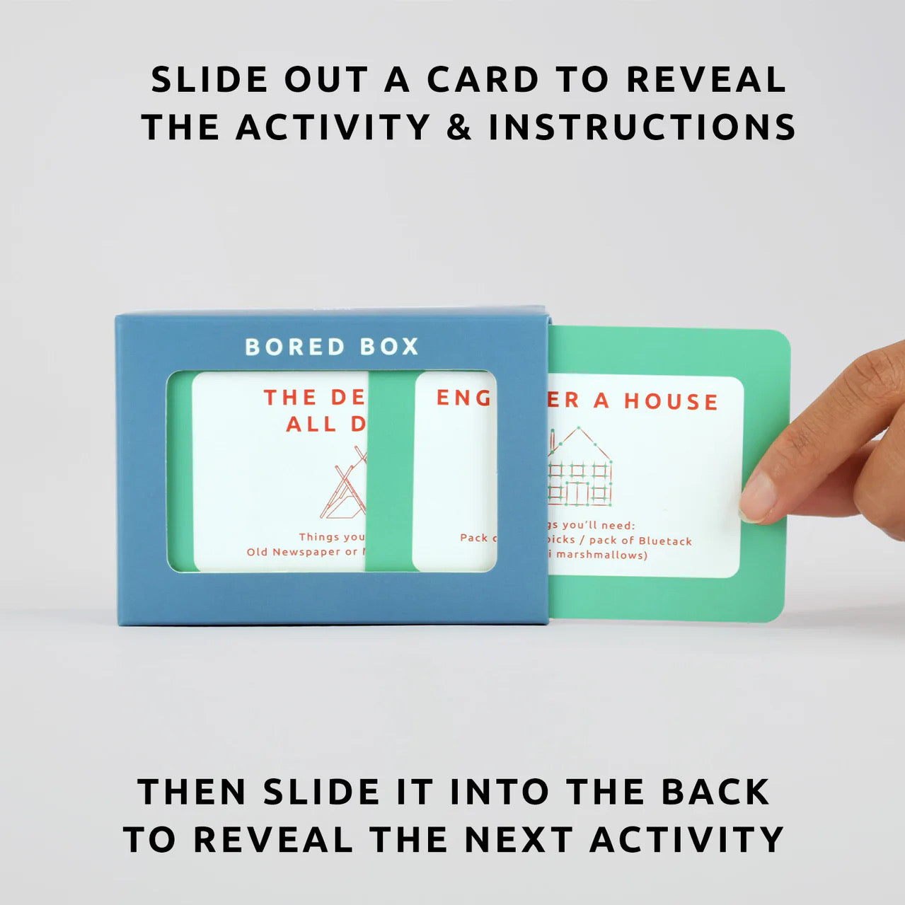 We designed the Bored Box to keep your kids entertained without a screen with 101 fun and educational activities.
