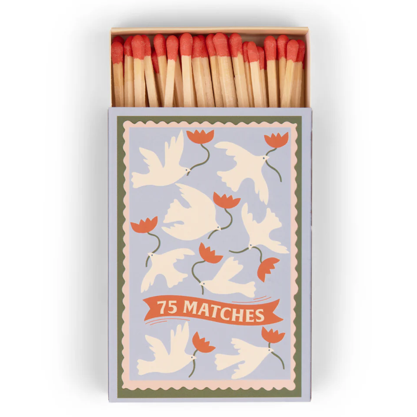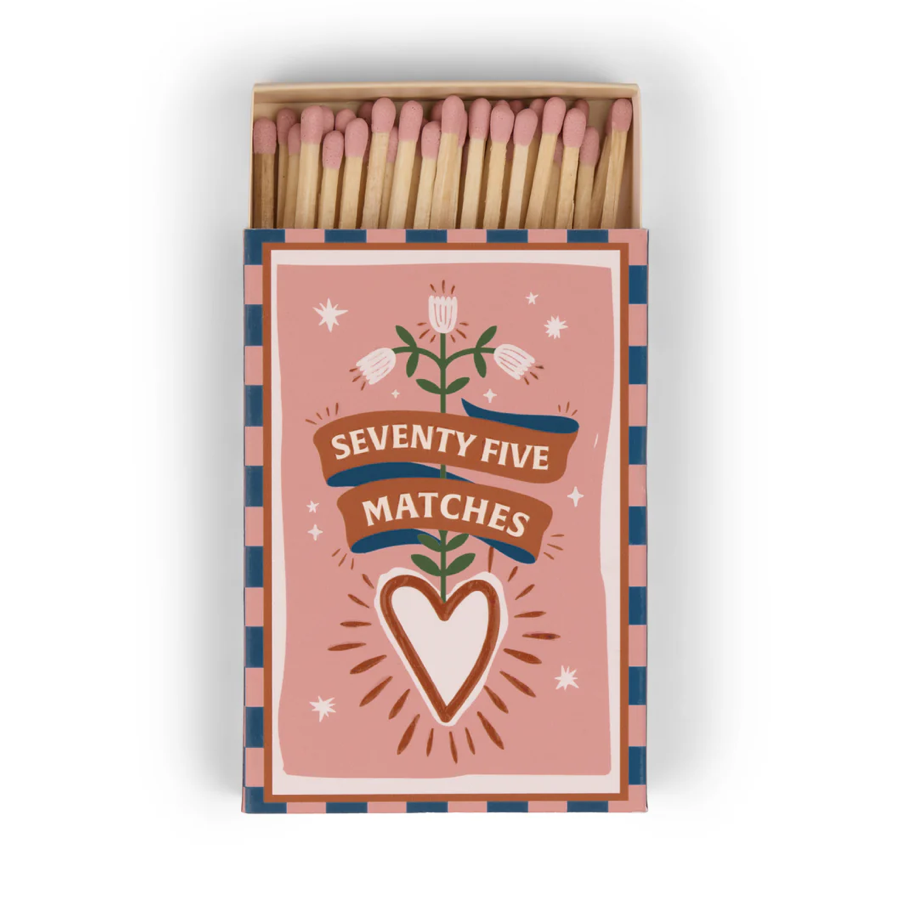 Illustrated in the same style, these matchboxes have been filled with 75 safety matches with coloured tips.