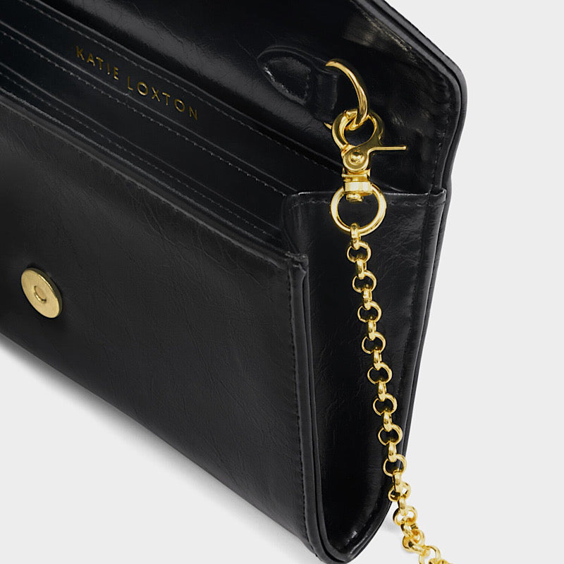 Made from high-shine patent crackle vegan leather, the Zea Crossbody Purse in Black is a party-season essential. The adjustable chain strap transforms it from a clutch to a crossbody or top handle in seconds, perfect for every festive plan. Sleek, compact, and effortlessly statement-making.