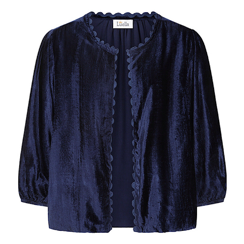 Elevate your evening look with the Bari Jacket — a refined velvet layer finished with a delicate ric-rac trim. Luxuriously soft and beautifully refined, it’s the perfect piece to take you from dinner to dancing. Available in classic black and deep navy.
